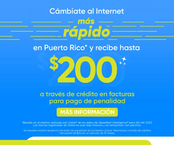 El cambio que hará tu negocio crecer! Cámbiate hoy al internet más rápido en PR* y recibirás hasta $200 a través de créditos en f[...]